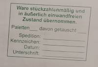 - die Versanddokumente vollständig vorliegen (z. B. Lieferschein)