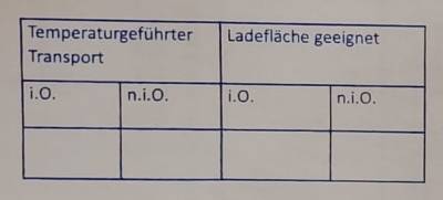 - Transportbedingungen eingehalten wurden (z. B. Sauberkeit, Temperatur, Unversehrtheit)